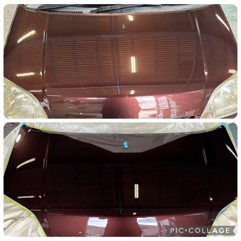 時間がとれたので社用車のダイハツ ミラのボンネットがシミになって洗車してもとれないので磨いてみました。(笑)磨き前と磨き後の比較をしたので投稿致します。(^_^)/磨き前と磨き後の光の進入角度が変わってし...