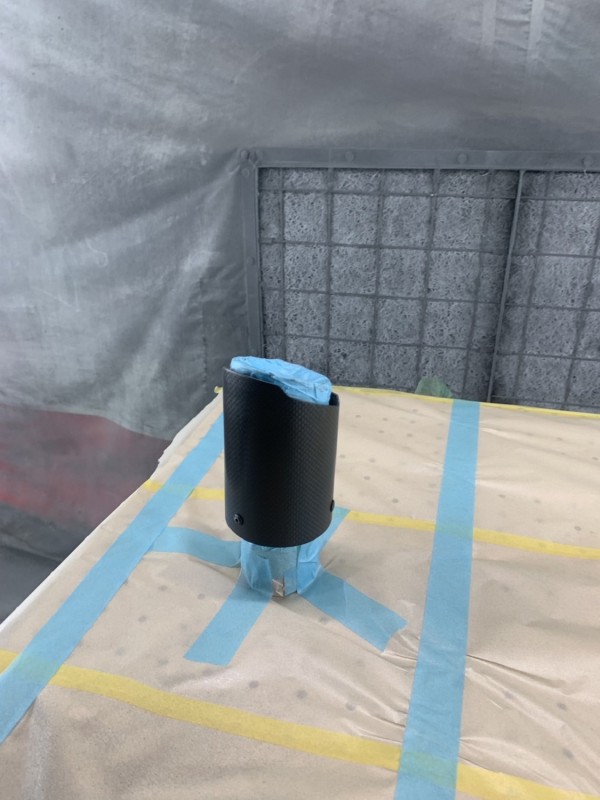 こんばんは、TYSのYです。社外マフラーカッターのカーボン部分表面の樹脂部分が劣化してきて白ボケしてきたということでキャンディ(ブラック)塗装を施工しましたので投稿致します。樹脂の劣化にて薄い白い線...