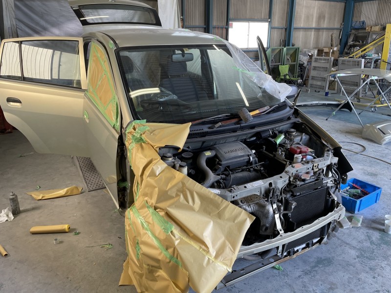 ダイハツ ミラ 代車 全塗装 部品外し フロント
