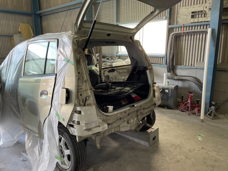 ダイハツ ミラ 代車 全塗装 部品外し リヤ