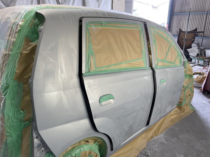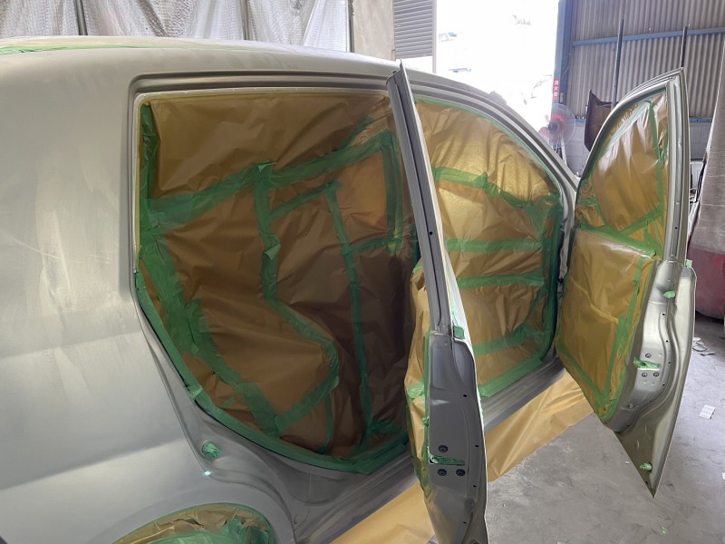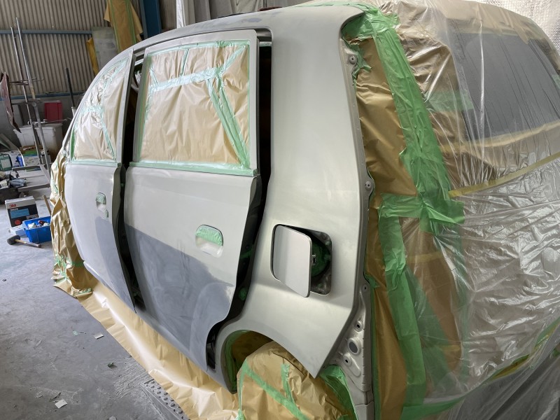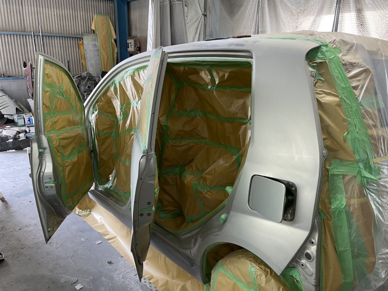 8/21はダイハツ ミラのボディを塗装する為、養生をしてました。