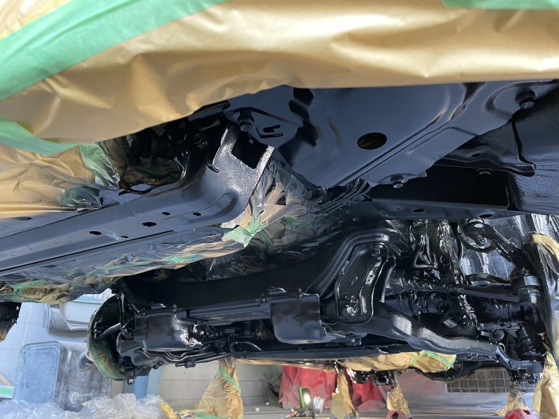 トヨタ ハイエース 下回り防錆塗装 養生完了 フロント側