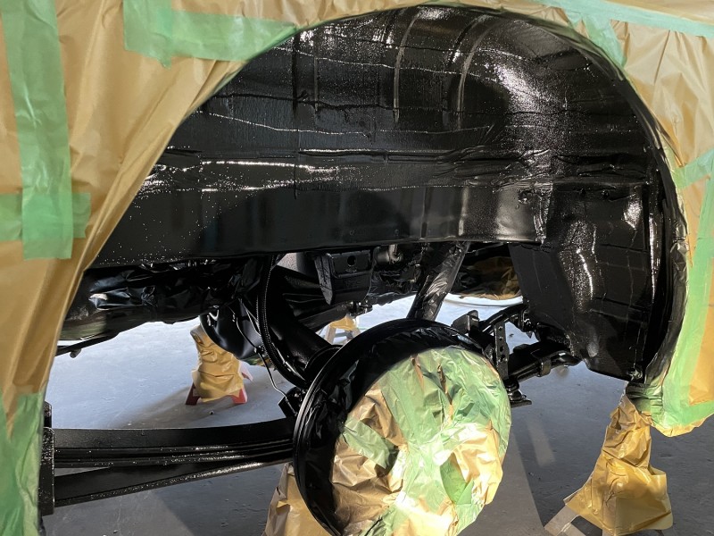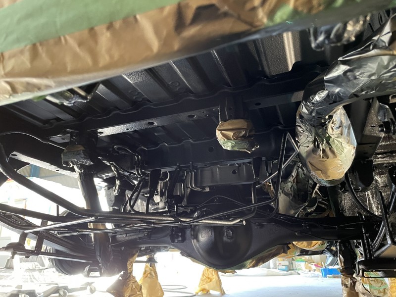 トヨタ ハイエース 下回り防錆塗装 養生完了 リヤ側