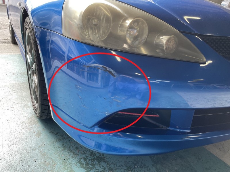 ホンダ インテグラがフロントバンパー修理で入庫されました。
