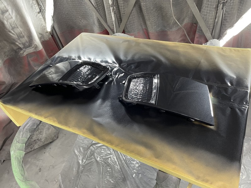 9/2はスバル インプレッサのスムージング施工したフロントバンパーとフォグカバーを塗装しました。\(^_^)/