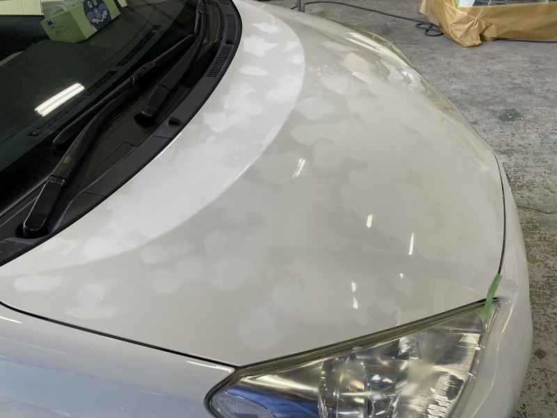 お客様はどこで付着したかわからないということで、ボンネット、フロントフェンダー、フロントバンパー、ヘッドライトと広範囲に付着していました。