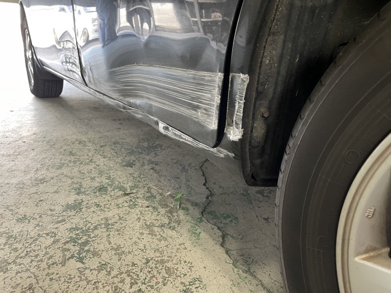 下のロッカパネルも板金しようとしましたが損傷範囲が広いのと、鉄板が折れ曲がっているので新品交換になりました。