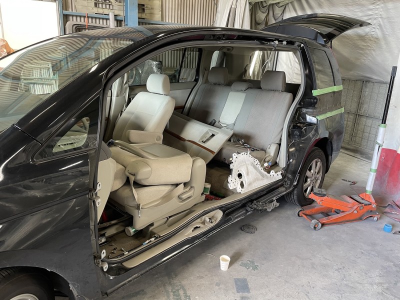 トヨタ アイシス 左廻り修理 フロントドア及びリヤドア 外し