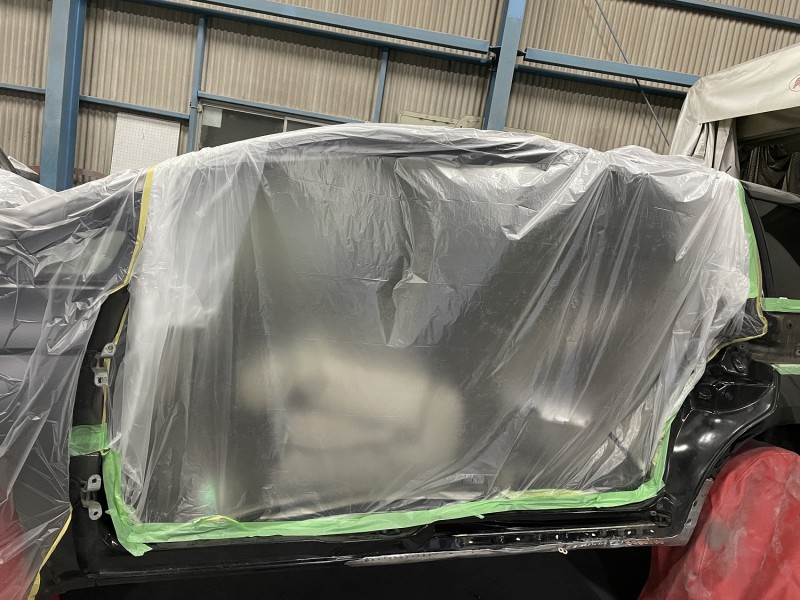 トヨタ アイシス 左廻り修理 養生して部品待ちになります。