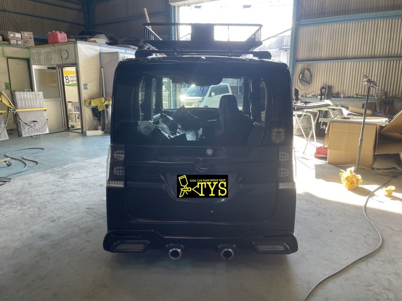 ダイハツ タント 左右クォーター&ルーフ損傷にて入庫(リアから)