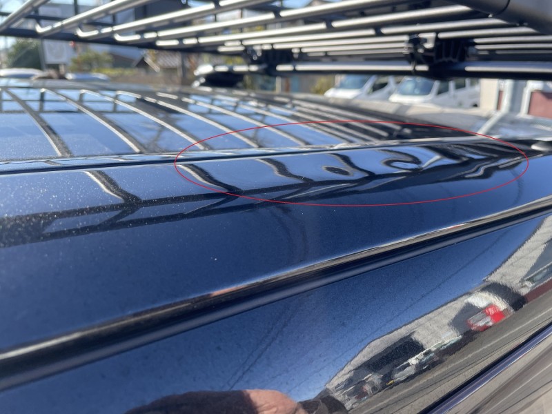 オーナー様より、キャリアをつけたのを忘れてて車庫にそのまま入れちゃってぶつかってしまったみたいです。(^_^;)