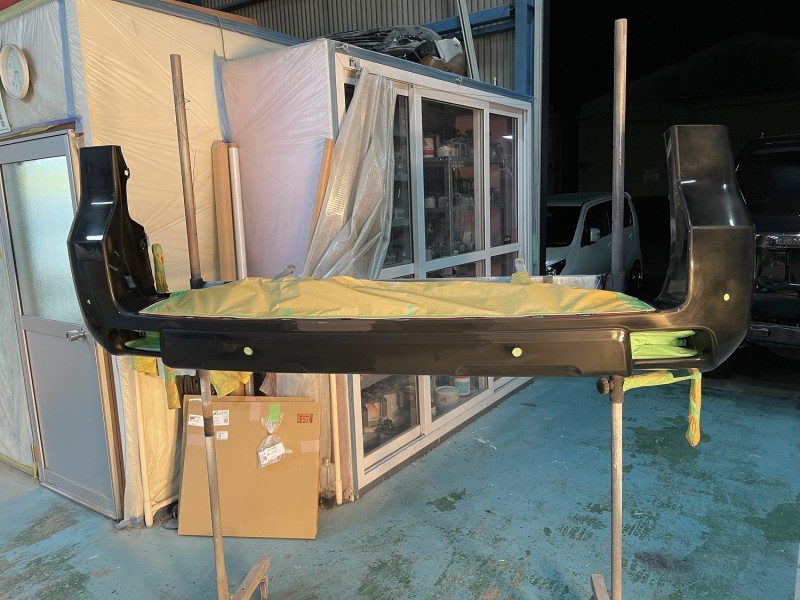 トヨタ プラド リヤバンパー 板金 熱処理、パテ処理完了