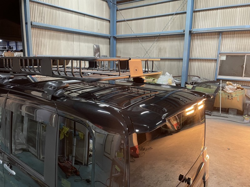 今日はダイハツ タントのルーフ、リヤゲート(リヤスポ部)、クォーター修理が完了したのでルーフキャリアを戻して納車でした。(^_^)/