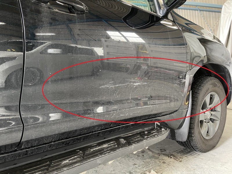 トヨタ ランドクルーザープラド 事故修理 フロントドア 凹み&キズ