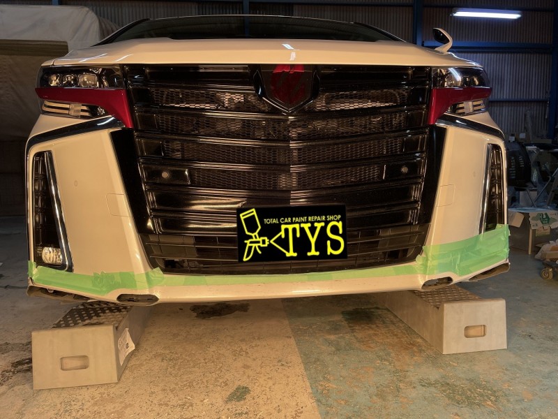 今日はトヨタ 30アルファードのフロントスポイラーの修理をする為、車体からフロントスポイラーを外しました。(^_^)