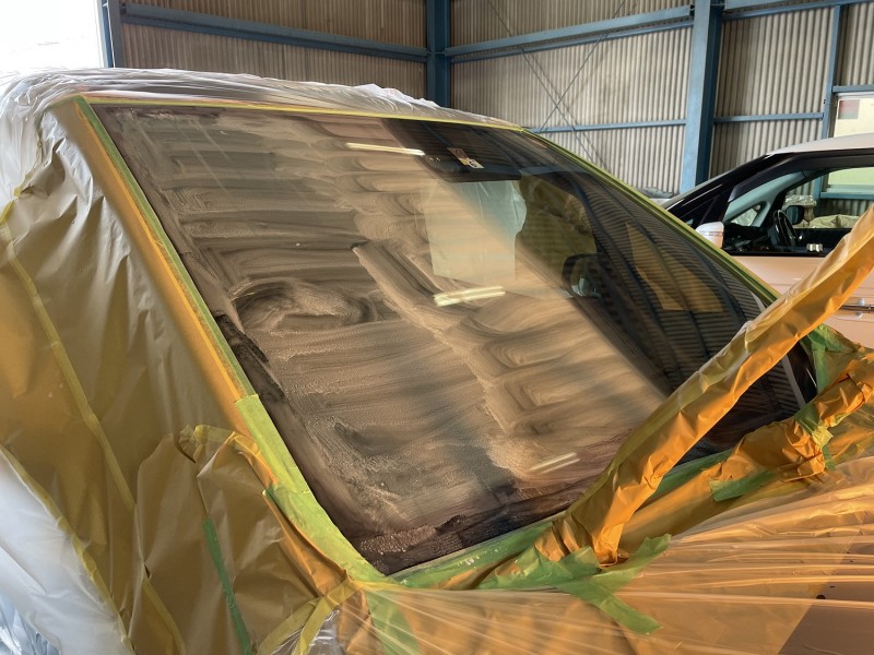 トヨタ エスクァイア- フロントガラス 油膜除去(作業中)