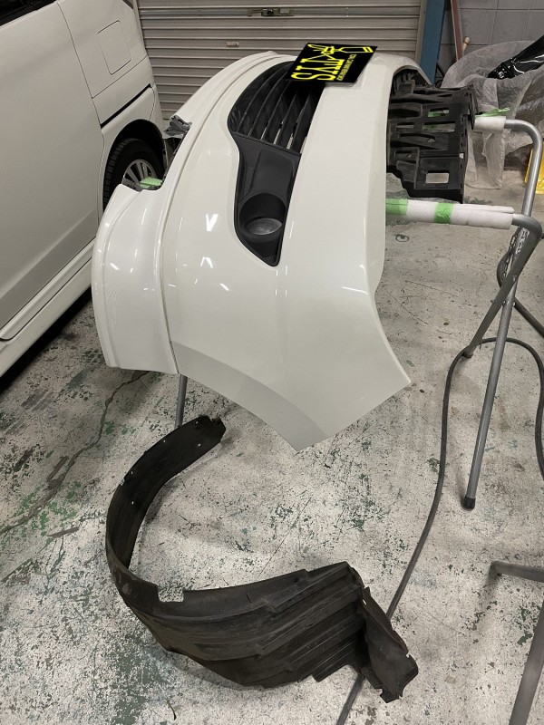 スズキ ソリオ フロントバンパー外し 外したフロントバンパーと左のインナーフェンダー