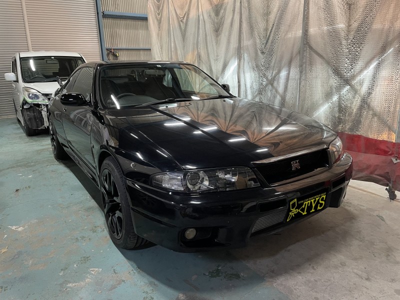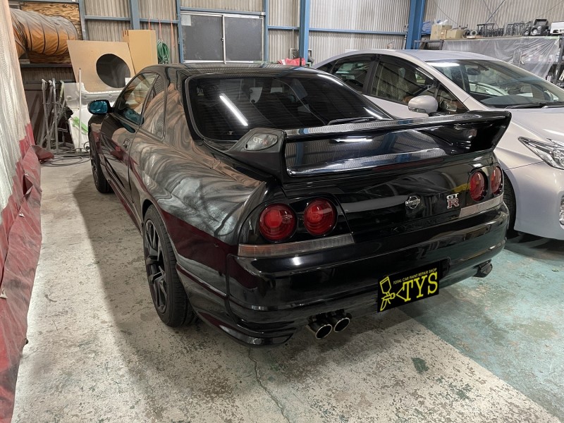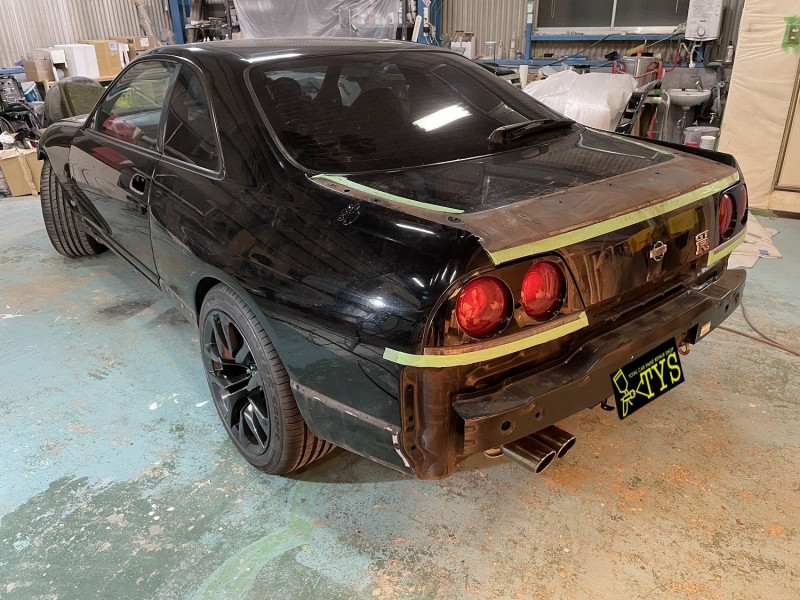 今日は先日入庫したニッサン スカイラインなのですが、ニスモエアロバンパーとニスモサイドスカートの塗装及び取付と両クォーターとルーフの錆除去及び補修塗装のご依頼から追加で全塗装のご依頼に変更になりました。m(_ _)m