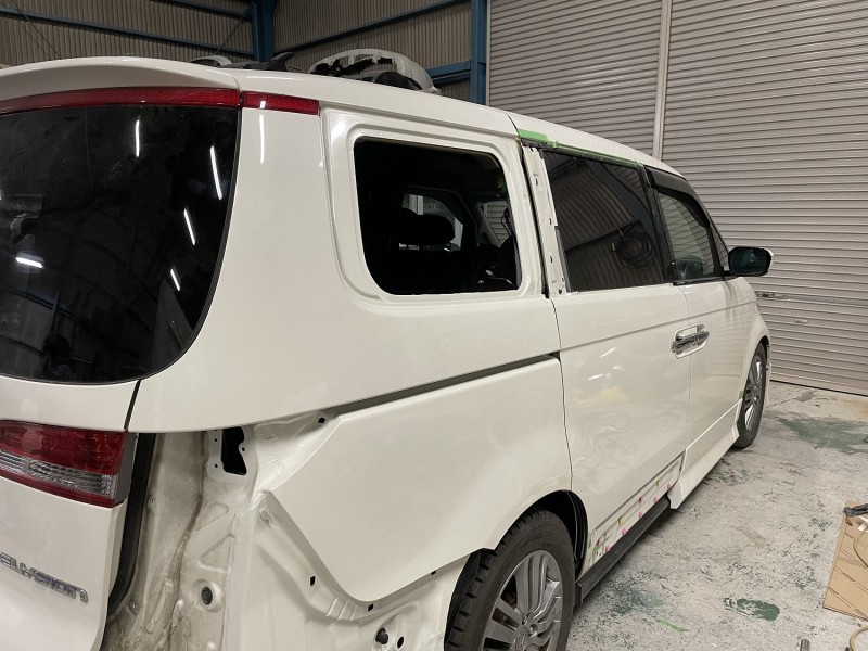 本日クォーター廻りの部品とスライドドアパネルモールディング、リヤバンパー、リヤバンパースポイラーの取付予定になります。