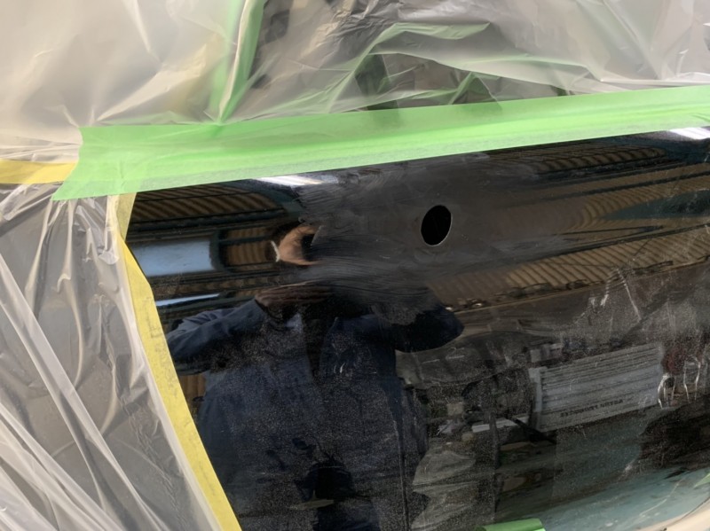 ニッサン スカイライン リヤクォーターアンテナ部 スムージング後の下地処理