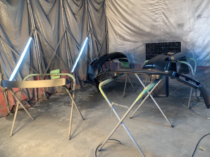 R33 スカイライン NISMO フロントバンパー、フロントスポイラー、リヤバンパー、ルーフスポイラー、純正給油口パネル 下地処理完了