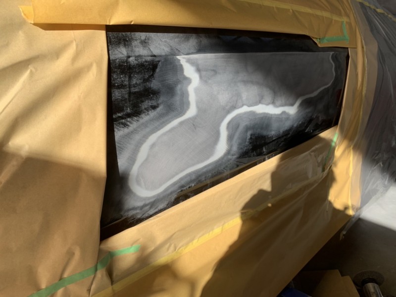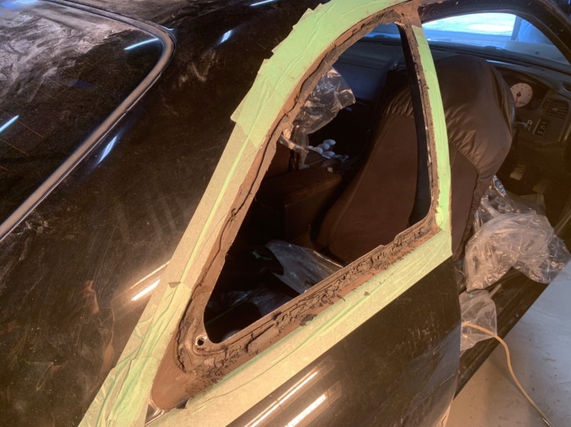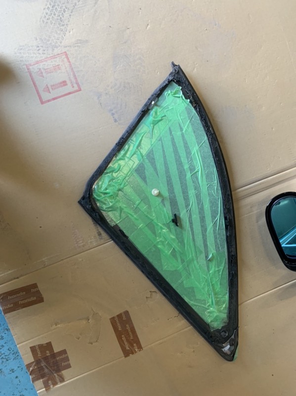 クォーターガラスを外さないとモールが一体で付いてるので綺麗に塗装できないんですよね。(^_^;