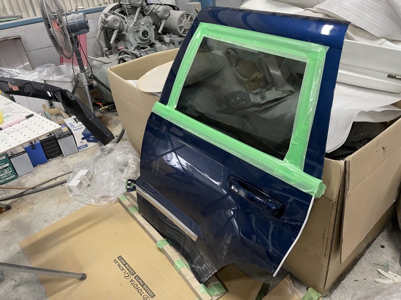 叩いたり、引っ張ったりしてリヤドアを付けては外してを繰り返し、試行錯誤で取付位置を基準の位置に戻してる最中です。(笑)
