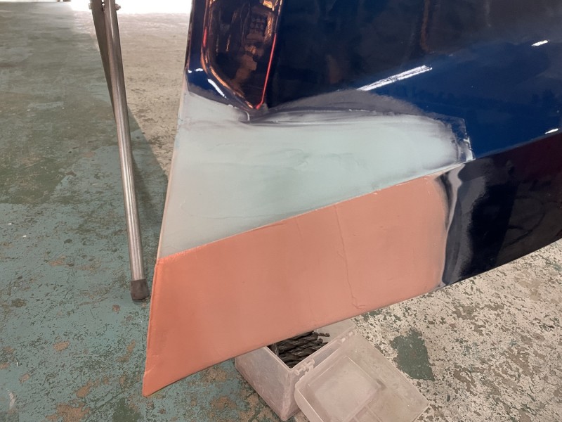 前回の投稿の写真のとおり、今回の損害付近にリヤバンパーの表面にクラックや線筋があったのですが、研いでみたら以前に他の板金屋さんにて修理した痕でした。(^_^;)