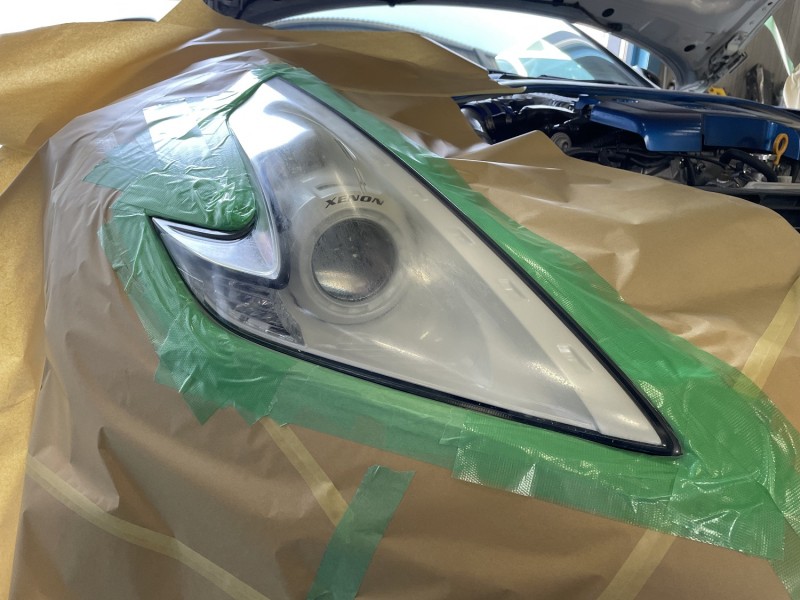 本日、ニッサン フェアレディZのヘッドライト磨きを施工したので投稿致します。