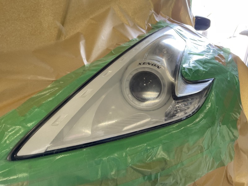 ニッサン フェアレディZ ヘッドライト磨き 助手席側 施工前(上からのアングル)