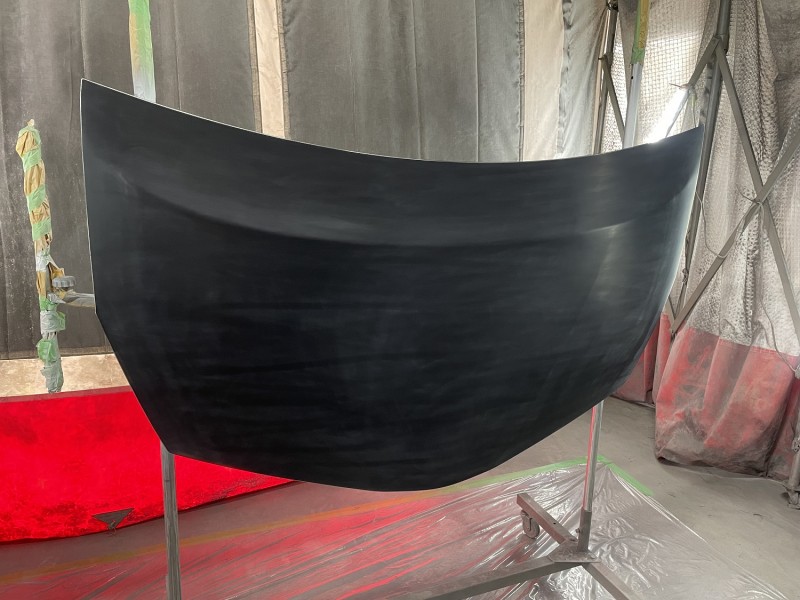 新品パネルなので足付けのサンディングをして、裏の鉄板貼り合わせ部にシーラーを入れて塗装しました。(^_^)/