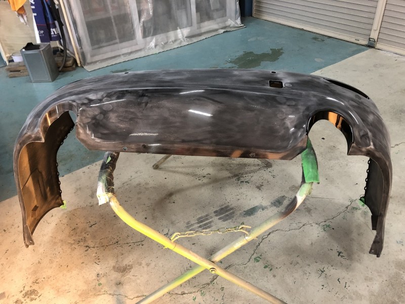 リア側は保険修理だったのですがオーナー様の依頼により、自費にてフロントバンパーも補修しました。