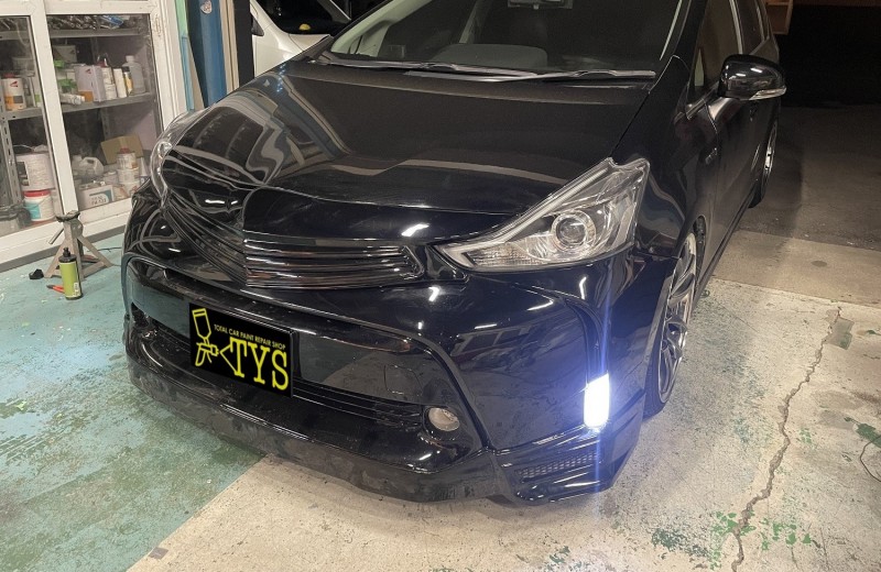 トヨタ プリウスアルファー フロントグリル、フロントスポイラー取付完了