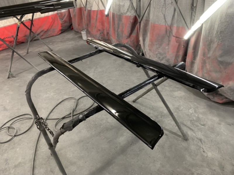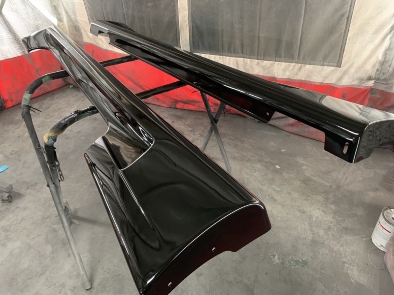 R33 スカイラインのサイドスカート、ドアモールディング、ドアミラーの塗装が完了したので投稿致します。(^_^)
