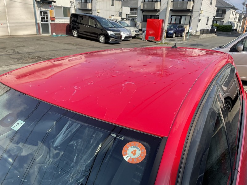 修理内容はルーフ塗装剥がれということで現車見たのですが、ルーフ、リヤゲートスポイラー、左右クォーター、前後バンパーと結構重傷です。(^_^;)