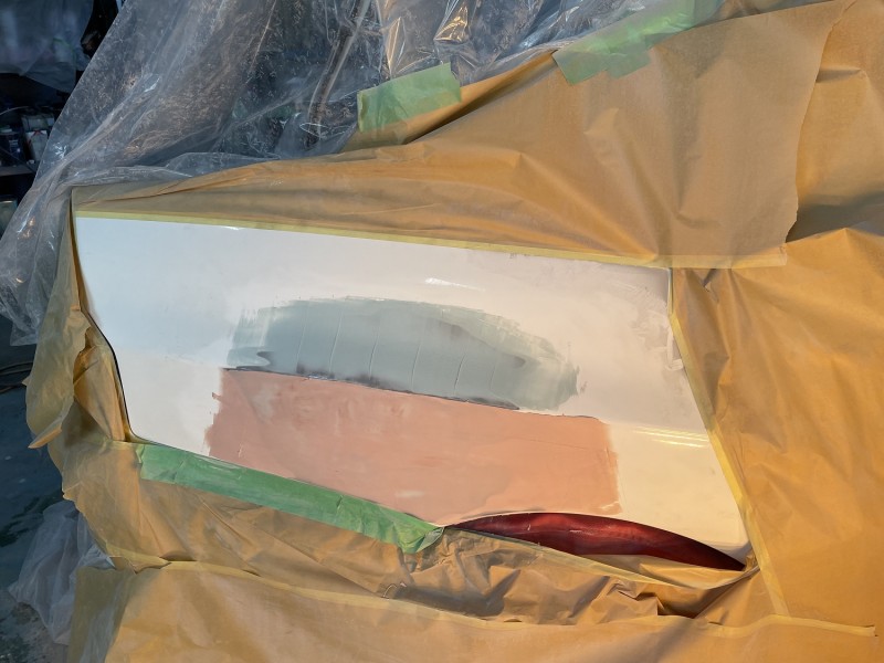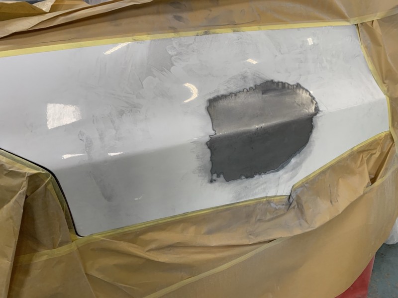 ミツビシ ランエボの左クォーターのパテ処理が完了しましたので投稿致します。(*^_^*)