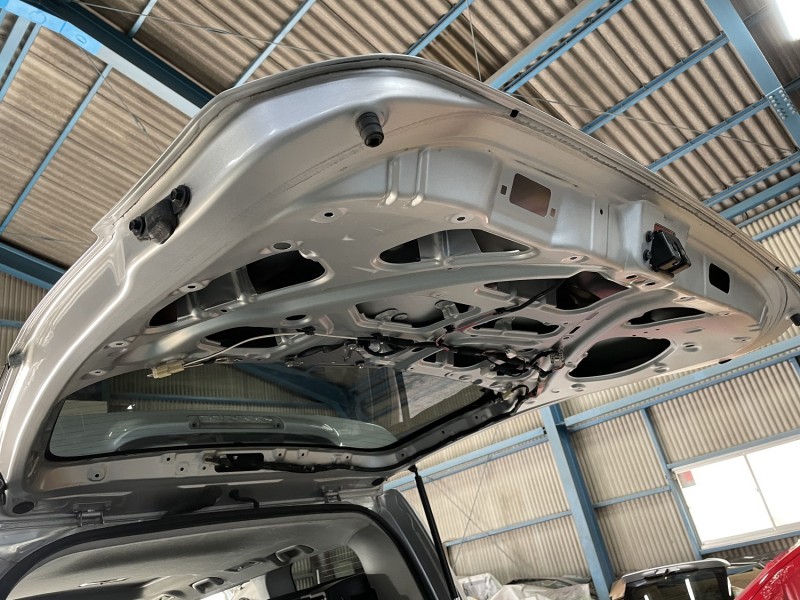 事前に現車確認をして、リヤゲート、リヤバンパー共に運良く中古パーツに在庫があったので中古パーツにて修理致しました。(^o^)