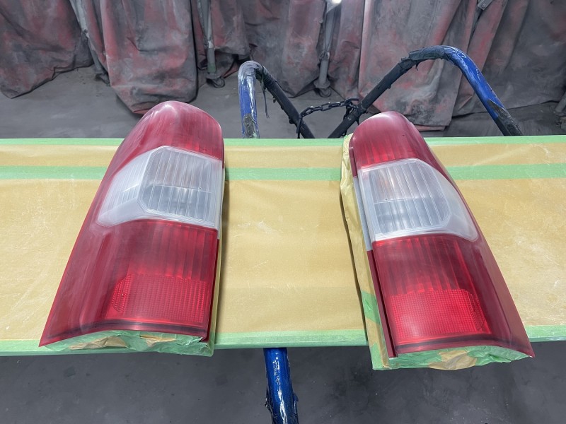 トヨタ プロボックスのヘッドライト、テールランプ塗装準備ということでサンディングで足付けしました。