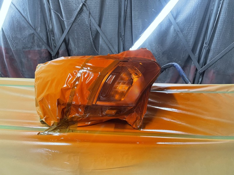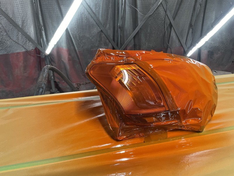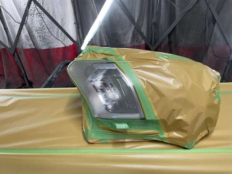 トヨタ プロボックスのヘッドライト、サイドマーカーの塗分塗装の途中経過を投稿致します。
