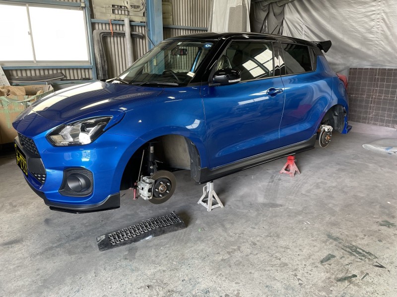 スズキ スイフトスポーツ ブレーキキャリパー塗装 車体同色及びクリヤー塗装 完了 フロント側