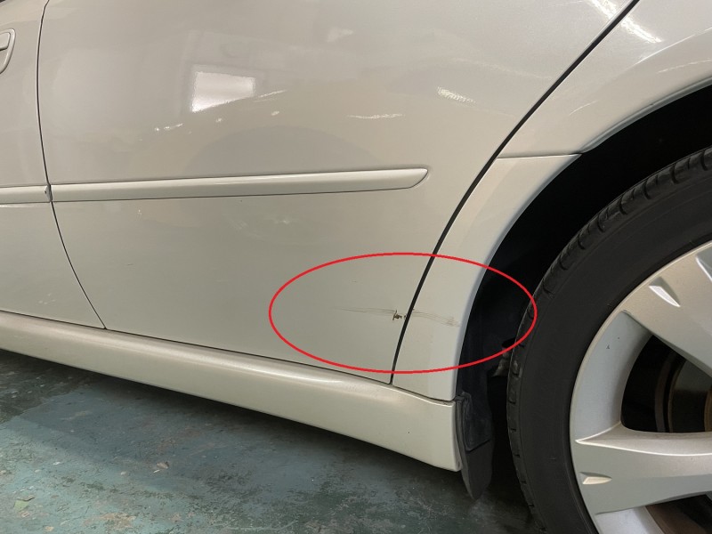 スバル レガシィ 左リヤドア・クォーターモールディング修理 破損部分