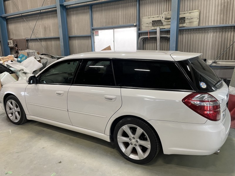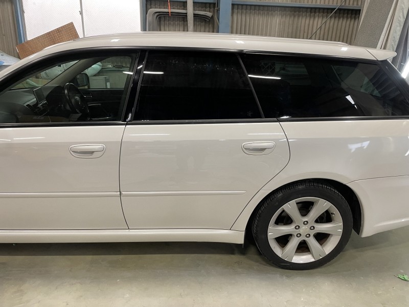 スバル レガシィ 左ドア廻り修理 完了(斜め後ろから)