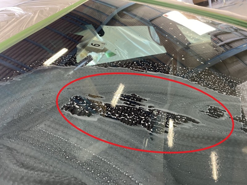 この赤丸内の部分が水が弾いてる跡なのでしっかり油膜を除去していきます。(*^_^*)