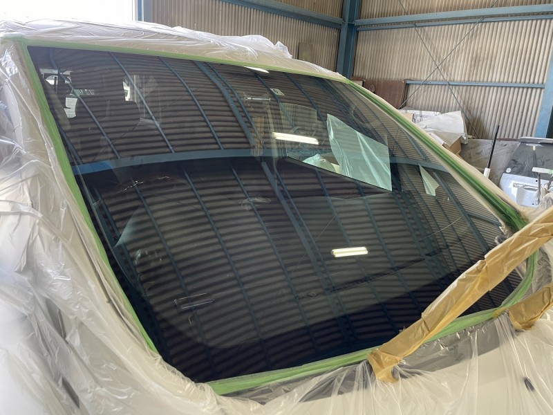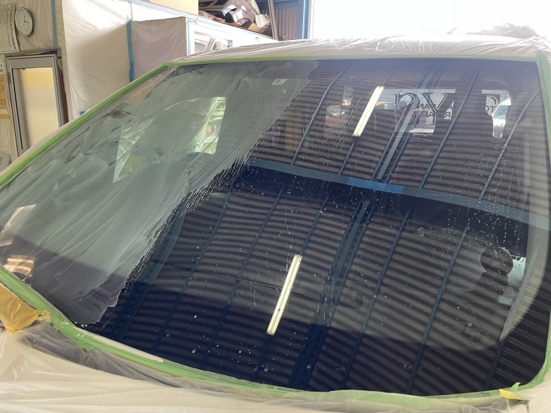 トヨタ アルファード フロントガラス 油膜除去 施工中