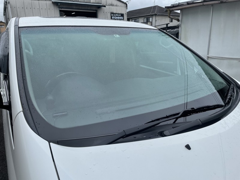 最近私事ですが、フロントガラスに油膜が付着して夜間雨天時のフロントガラスのギラツキが酷くなったので油膜除去&撥水コーティングを施工しました。