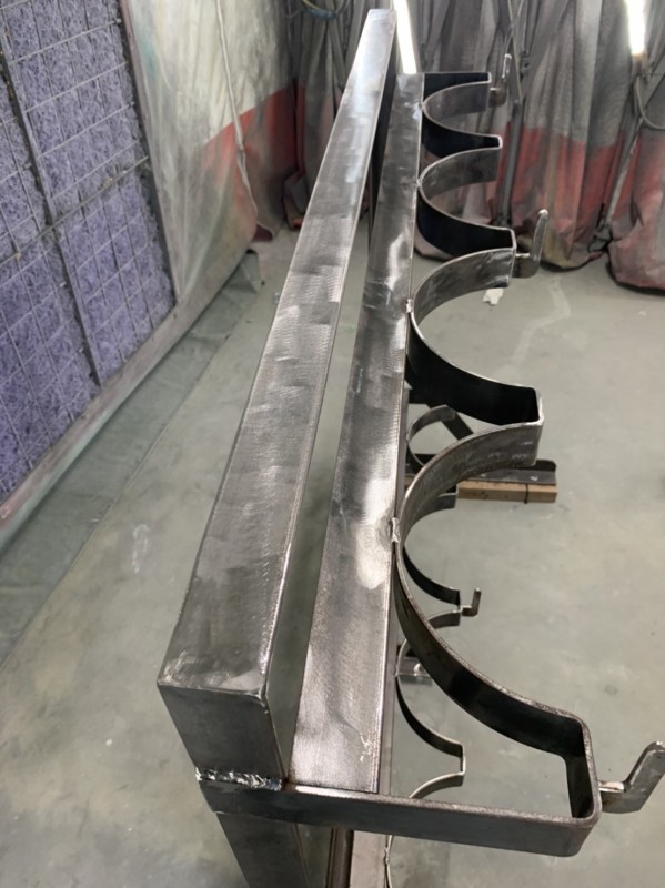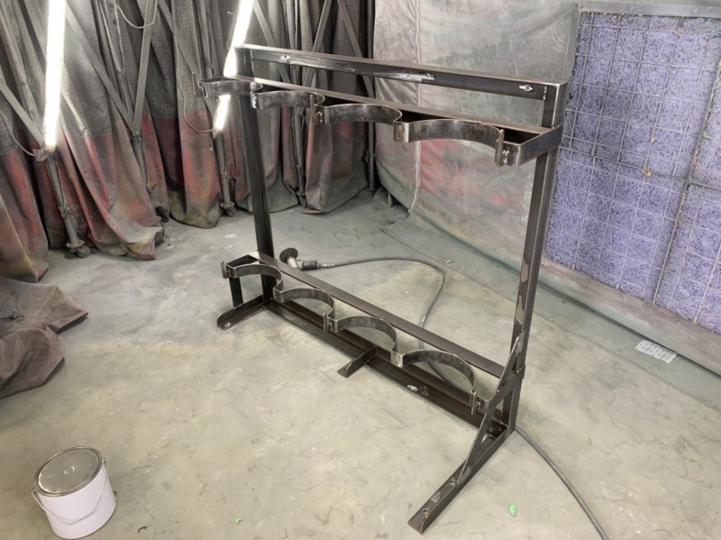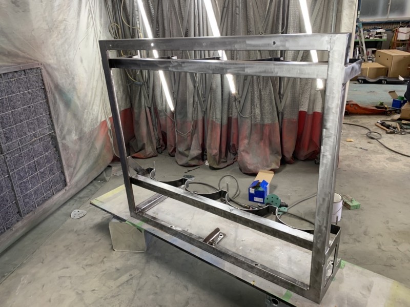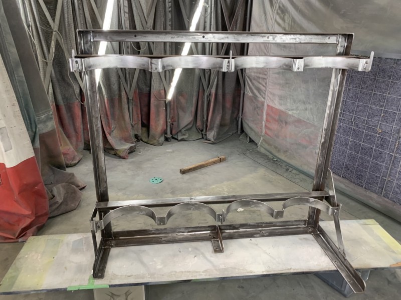 お世話になってる業者様より、ガスボンベを設置する特注のフレームを塗装して欲しいという依頼をいただいたので下地処理からしていきます。(^_^)/