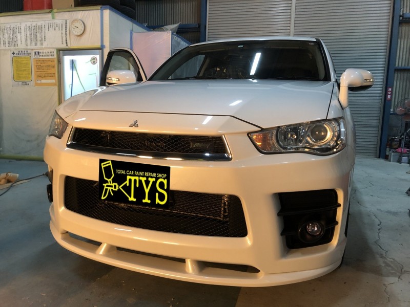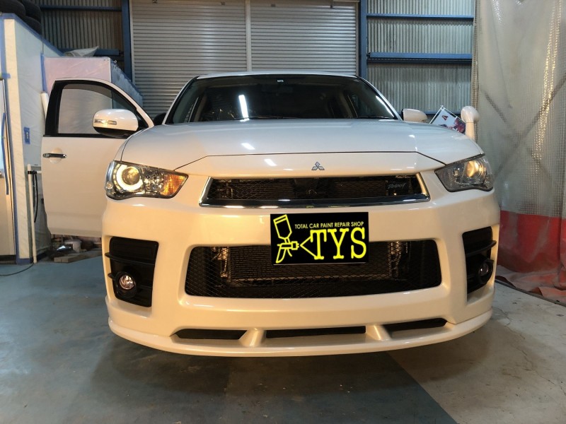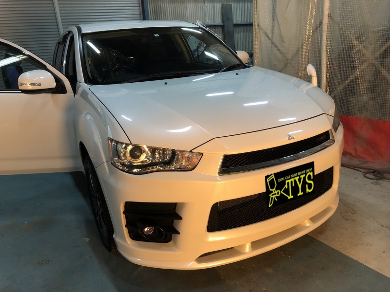 今回はアウトランダーの社外フロントスポイラー塗装、取付、社外マフラーの取付の依頼をお受けしたので投稿致します。