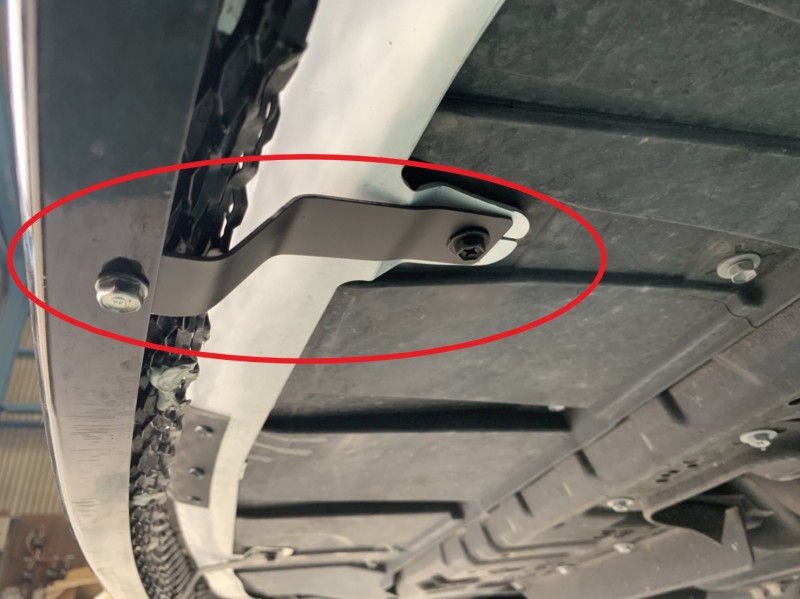 フロントスポイラー自体が両面テープのみの取付なので重みで下がってくるらしく、ステーを追加してスポイラーが下がらないようにしたいということなのでフロントバンパーと共締めして固定するステーを2つ作りました。(^_^)/
