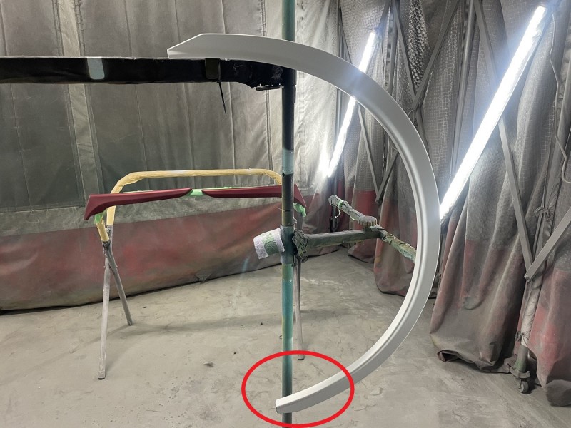 写真を撮ったアングルが悪くてわかりづらいのですが、カットして加工して下地処理した部分をカラーでボカシてクリヤー1枚仕上げにて施工しました。(^○^)