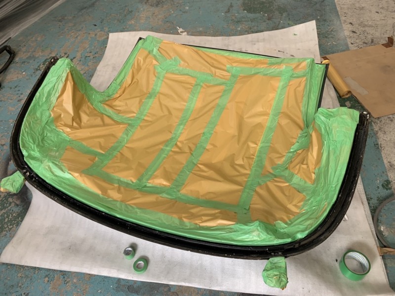 ユーノス ロードスター ルーフ 歪み確認のサフェーサー処理(左後から)